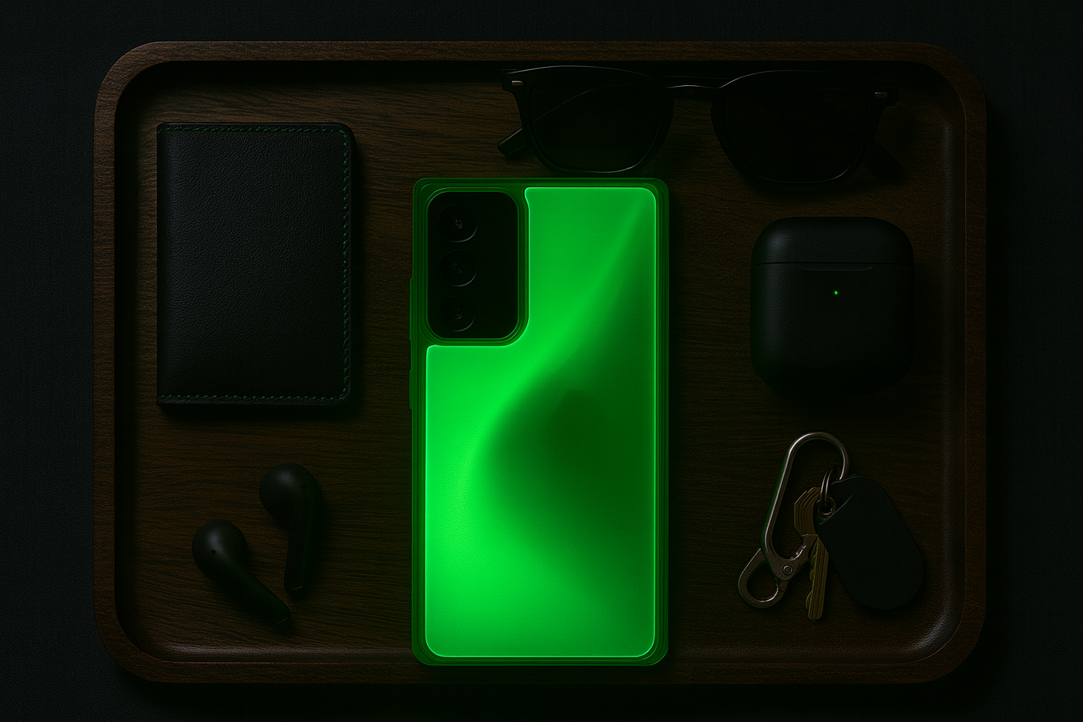 The glow is activated by light—sunlight or artificial light works great. After charging, the glow can last several hours in the dark. The intensity and duration depend on how long the case is exposed to light. For the best results, “recharge” it regularly.
